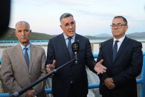 كما شملت الزيارة بلدية البوني، أين عاين الوزير مشروع إنجاز خزانات مائية بسعة إجمالية تقدر بـ 7500 م³ (3 × 2500 م³) بمنطقة بوخضرة العليا، إضافة إلى قنوات الجلب والتوزيع على مسافة 3.8 كلم، وهو مشروع يهدف إلى تعزيز وتدعيم التزويد بالمياه الصالحة للشرب لفائدة عدة أحياء ومناطق، من بينها بوخضرة 01، حي سيبوس، ومشروع توسعة ميناء الفوسفات. وفي هذا السياق، أكد السيد الوزير أن هذه المشاريع تندرج ضمن جهود الدولة الرامية إلى رفع قدرات التخزين والحشد المائي وتحسين الخدمة العمومية، مع ضرورة الحفاظ على المنشآت المائية وترسيخ ثقافة الاستهلاك الرشيد لدى المواطنين. كما استمع إلى عرض حول تقنيات التحكم عن بعد في منشآت الري، داعياً إلى تعميم هذه الأنظمة الحديثة عبر مختلف منشآت القطاع على المستوى الوطني، لما لها من دور في تحسين الفعالية وضمان استجابة سريعة لانشغالات المواطنين