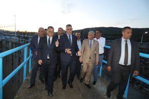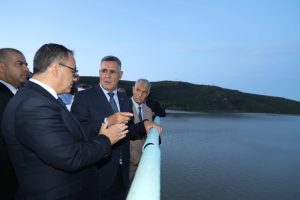 وبمنطقة الحوايشية، أشرف السيد الوزير، رفقة ولاة ولايتي الطارف وعنابة، على متابعة أشغال القناة الرئيسية للربط البعدي انطلاقاً من محطة تحلية مياه البحر كدية الدراوش، حيث استمع إلى عرض تقني حول مدى تقدم الإنجاز، وهو مشروع استراتيجي سيمكن من تزويد أربع ولايات هي الطارف وعنابة وقالمة وسكيكدة بالمياه الصالحة للشرب. وفي هذا الإطار، دعا إلى تسريع وتيرة الأشغال قصد استلام المشروع ودخوله حيز الخدمة في أقرب الآجال، خاصة مع اقتراب موسم الاصطياف، بما يسمح بتحسين ملموس في تزويد المواطنين بالمياه، مع التأكيد على ضرورة تحسين الأداء واعتماد الرقمنة في التسيير لضمان التكفل السريع بانشغالات المواطنين.